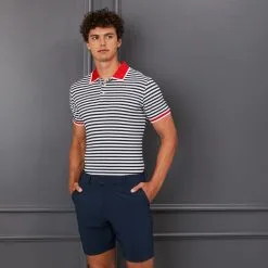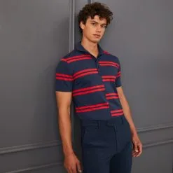 OFFSET STRIPE MODERN SPREAD COLLAR TECH PIQUÉ POLO