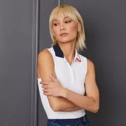 CONTRAST COLLAR SILKY TECH NYLON SLEEVELESS POLO