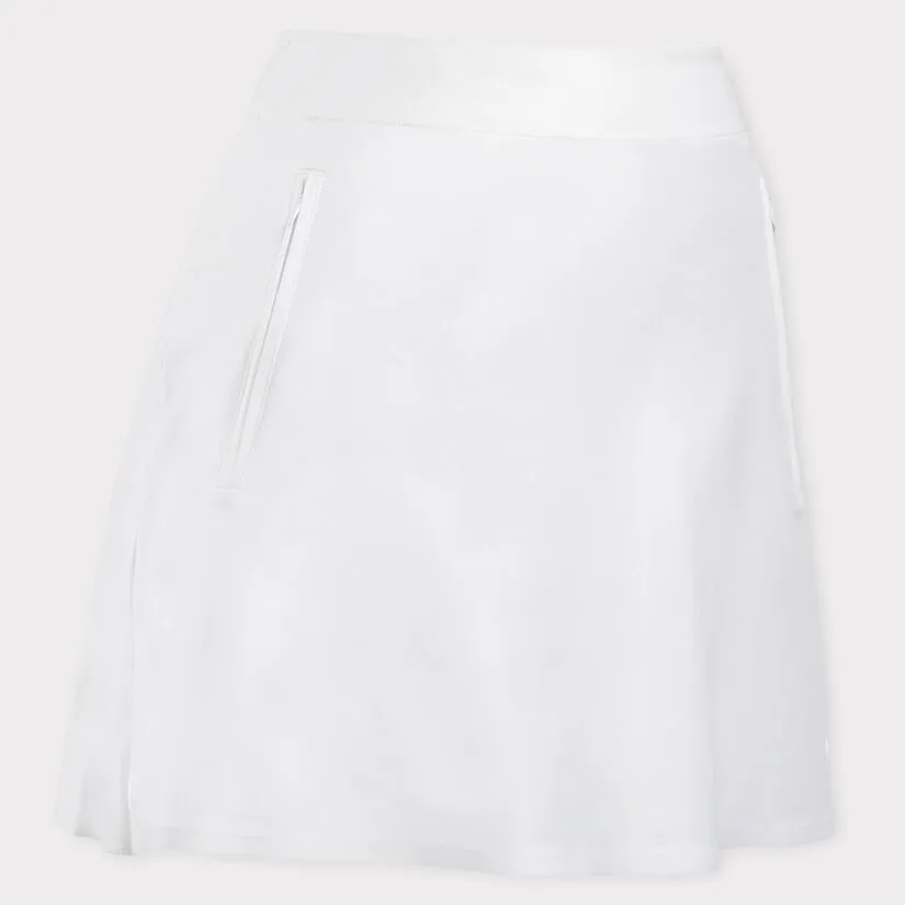 OUR EFFORTLESS SKORT IS JUST THAT; A GO-TO SKORT FOR EVERY GOLF ROUND OR TENNIS MATCH. THIS SKORT FEATURES A BUILT-IN SHORT WITH ZIP CLOSURE SIDE POCKETS AND SINGLE BACK POCKET. OUR “CALENDERED” MATERIAL GIVES THIS FABRIC A SOPHISTICATED BUT SUBTLE SHEEN WHILE ON THE COURSE. OFFERED IN STANDARD 15″ LENGTH AND LONGER 17″. G4LS20B01