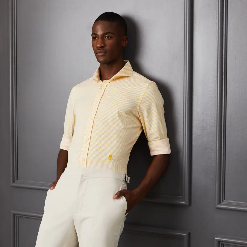CLASSIC STRIPE MODERN SPREAD COLLAR NYLON WOVEN SLIM FIT SHIRT