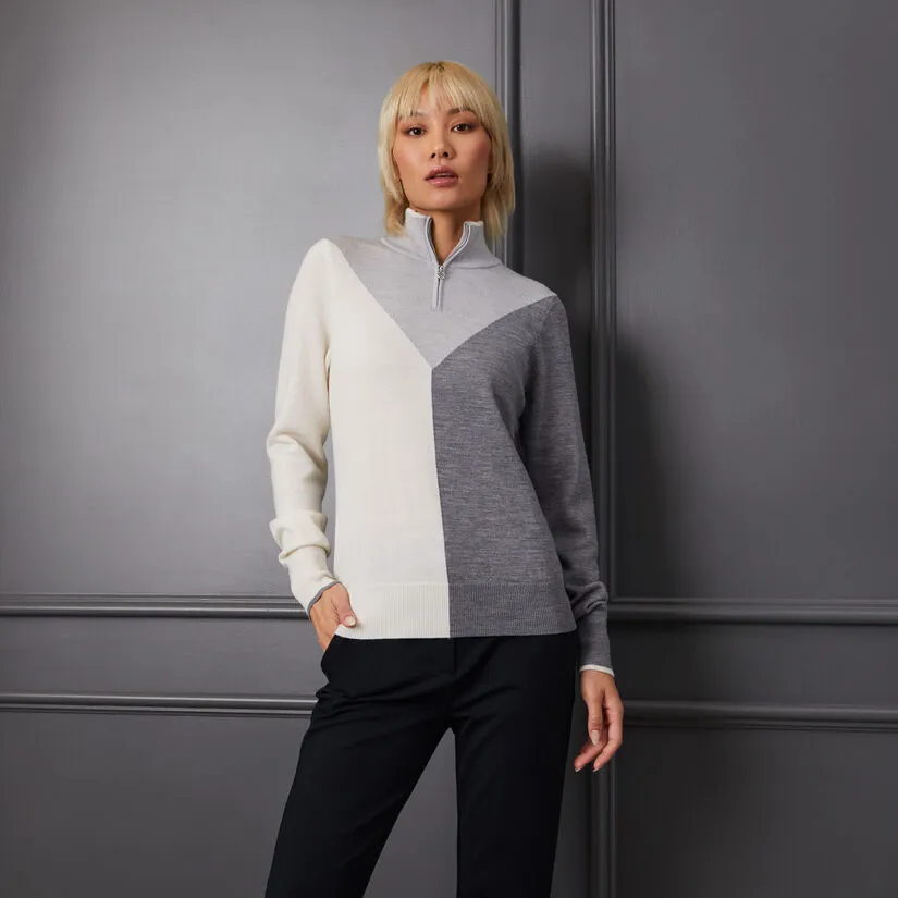 COLOUR BLOCK MERINO WOOL QUARTER ZIP SWEATER