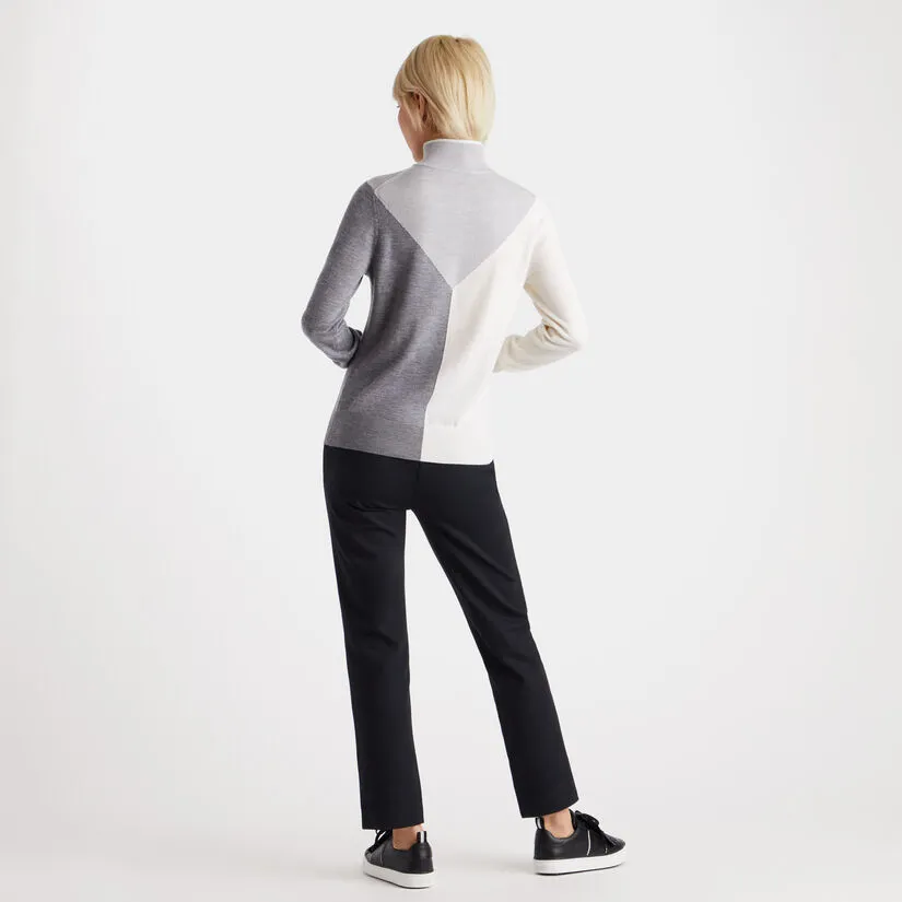 MADE WITH COZY ALL SEASON MERINO WOOL, THIS DESIGN COMBINES ALL YEAR COMFORT WITH CLASSIC STYLING. THE UNIQUE DETAILS ON THE CHEST, MOCK NECK AND SLEEVES GIVE A SOPHISTICATED APPEARANCE WITH A SIMPLE, TAILORED SILHOUETTE FOR A MASTERFUL ON-COURSE LOOK. G4LS23S601