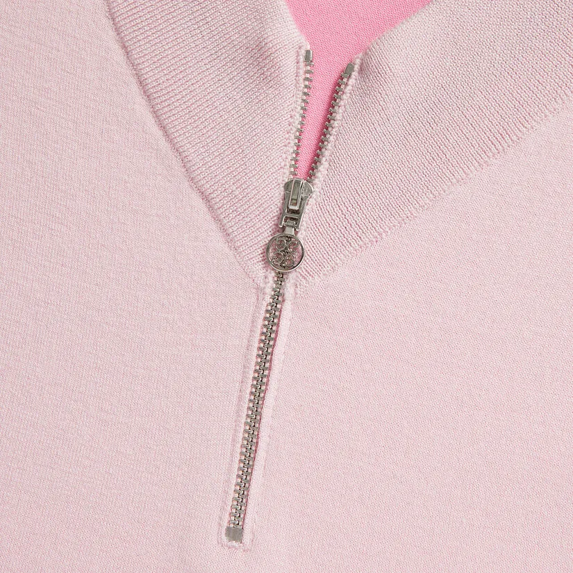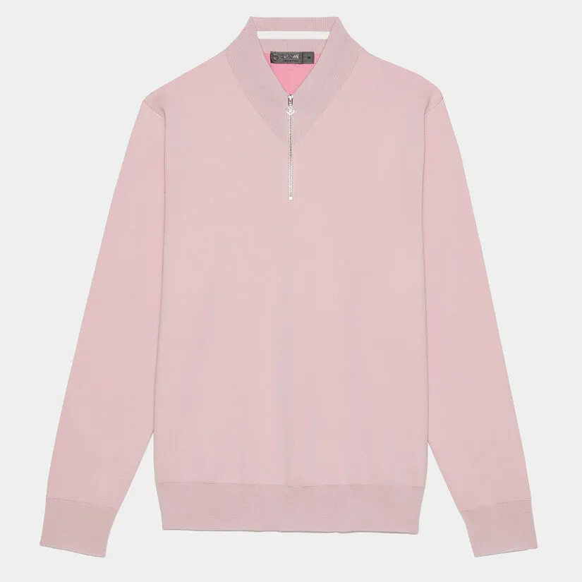 CONTRAST V NECK MERINO WOOL SLIM FIT QUARTER ZIP SWEATER