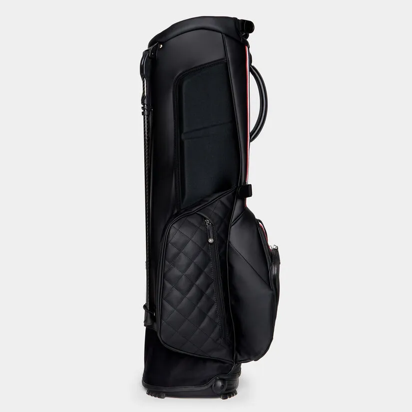OUR BEST-SELLING CARRY BAG FEATURES A 4-WAY TOP DESIGNED WITH A VELOUR LINING FOR MAXIMUM CLUB PROTECTION, A ROTATOR STAND SYSTEM FOR MAXIMUM STABILITY, A SELF-ADJUSTING CONVERTIBLE STRAP FOR AUTOMATIC EQUAL DISTRIBUTION, AND A COMPRESSION MOLDED NEOPRENE BACK PANEL FOR COMFORT. THE DAYTONA PLUS BOASTS SOPHISTICATED GROSGRAIN DETAILING AND QUILTED PANELS, A SELF-COLOURED RAIN HOOD, AND AN UMBRELLA HOLDER, AS WELL AS SEVERAL POCKETS INCLUDING A LARGE GARMENT COMPARTMENT, WATER RESISTANT POCKET FOR PERSONAL ITEMS, COOLER-LINED WATER BOTTLE SLEEVE, MAGNETIC VELOUR-LINED RANGEFINDER POCKET, AND PEN POCKET. WEIGHT = 4.65 LBS. DIMENSIONS = 35.5″ H x 11.5″ L x 8.5″ W G4AS22A24