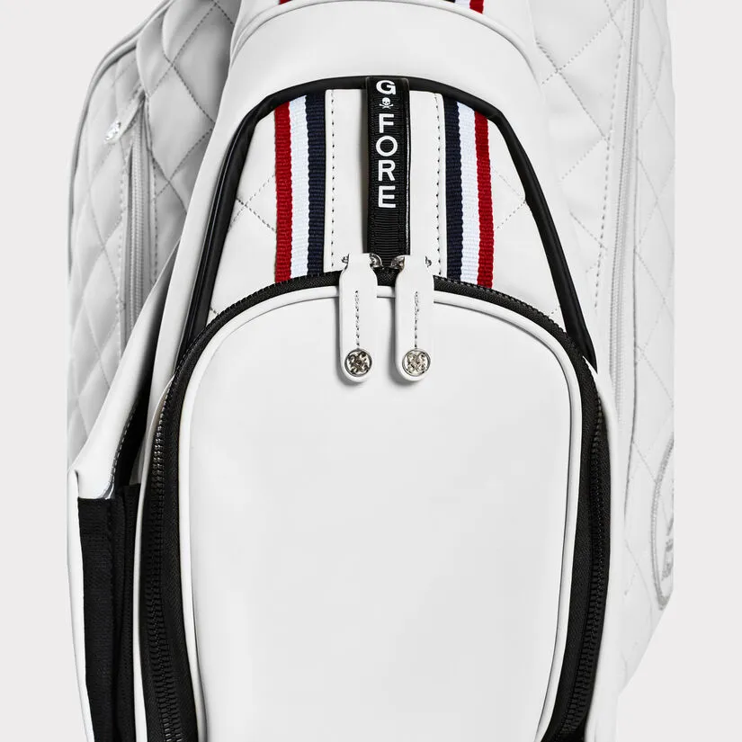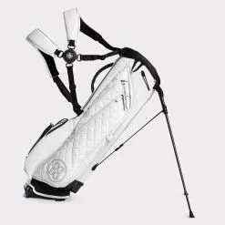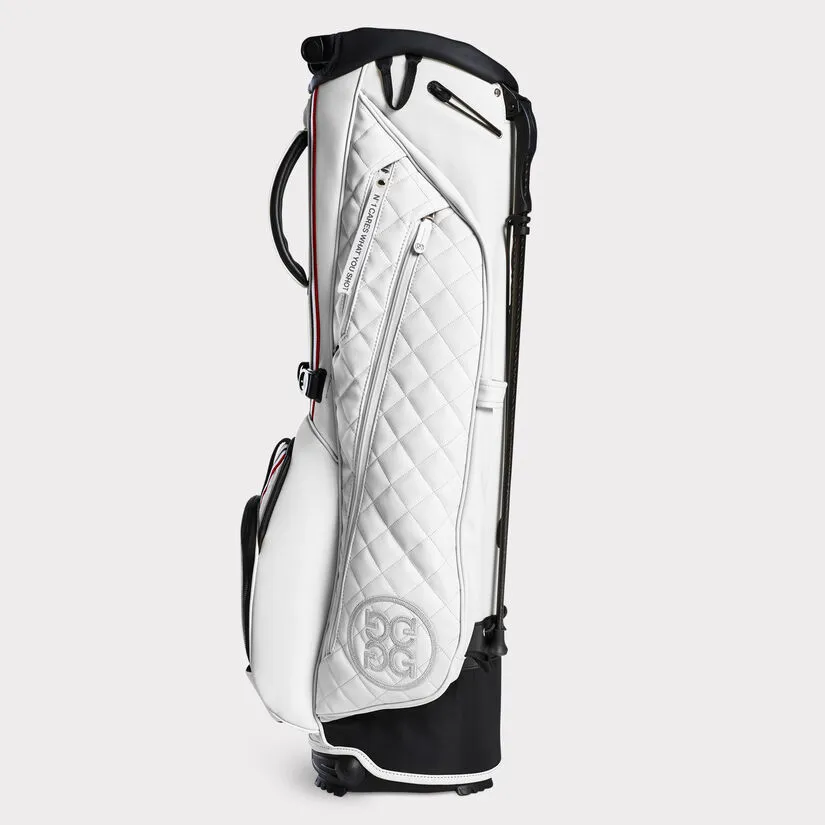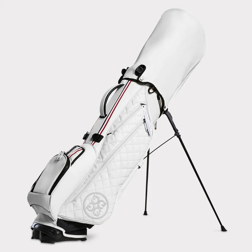 OUR BEST-SELLING CARRY BAG FEATURES A 4-WAY TOP DESIGNED WITH A VELOUR LINING FOR MAXIMUM CLUB PROTECTION, A ROTATOR STAND SYSTEM FOR MAXIMUM STABILITY, A SELF-ADJUSTING CONVERTIBLE STRAP FOR AUTOMATIC EQUAL DISTRIBUTION, AND A COMPRESSION MOLDED NEOPRENE BACK PANEL FOR COMFORT. THE DAYTONA PLUS BOASTS SOPHISTICATED GROSGRAIN DETAILING AND QUILTED PANELS, A SELF-COLOURED RAIN HOOD, AND AN UMBRELLA HOLDER, AS WELL AS SEVERAL POCKETS INCLUDING A LARGE GARMENT COMPARTMENT, WATER RESISTANT POCKET FOR PERSONAL ITEMS, COOLER-LINED WATER BOTTLE SLEEVE, MAGNETIC VELOUR-LINED RANGEFINDER POCKET, AND PEN POCKET. WEIGHT = 4.65 LBS. DIMENSIONS = 35.5″ H x 11.5″ L x 8.5″ W G4AS22A24