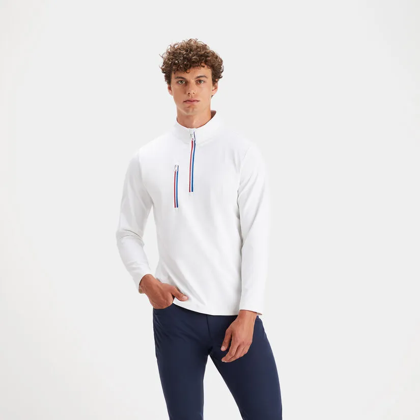 MADE WITH PERFORMANCE INTERLOCK, THIS EVERYDAY LAYER HAS A MOSSED INTERIOR FOR ADDED WARMTH AND COMFORT. FEATURING OUR SIGNATURE ‘DAYTONA’ TRI COLOUR STRIPE DETAILS THROUGHOUT, WITH A STYLISH FRONT ZIPPER POCKET. G4MA23K125