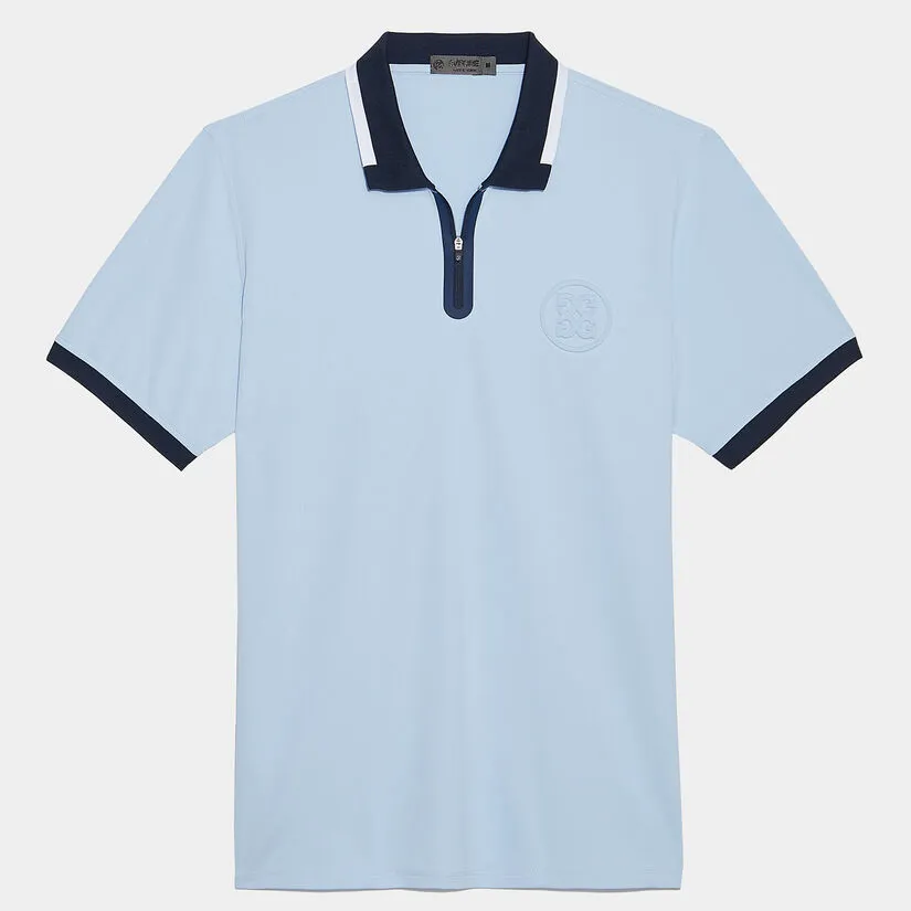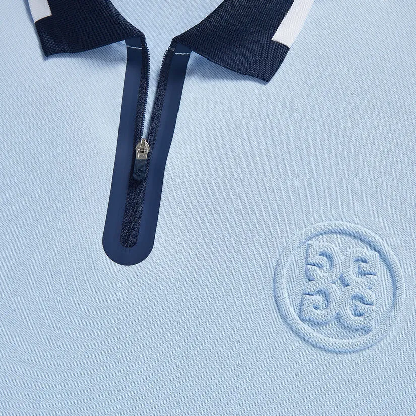 THE EMBOSSED LOGO QUARTER ZIP RIB COLLAR TECH PIQUÉ SLIM FIT POLO SPORTS A CLASSIC SILHOUETTE WITH SOPHISTICATED DETAILS. MADE WITH LIGHTWEIGHT TECH PIQUÉ THAT SUPPLIES MAXIMUM BREATHABILITY, PLUS AN ENLARGED EMBOSSED TONAL G/FORE LOGO FOR ADDED STYLE. PAIR IT WITH THE STRAIGHT LEG CLUB TROUSER FOR A TRULY SOPHISTICATED LOOK THAT’S TOUR-READY. G4MS23K301