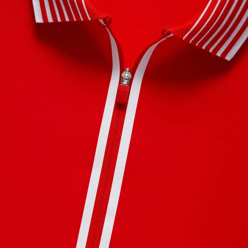 YOUR NEW FAVOURITE TOP IS THE FEATHERWEIGHT SILKY TECH NYLON QUARTER ZIP POLO. INSPIRED BY RETRO FASHION, THE GRADIENT RIBBED COLLAR AND THE UNIQUE 1/4 ZIP TAPING EMBELLISHMENT MAKE THIS STYLE A STANDOUT ON THE COURSE. PAIR IT WITH OUR EFFORTLESS SKORT FOR A CHIC ON-COURSE LOOK. G4LS23K863