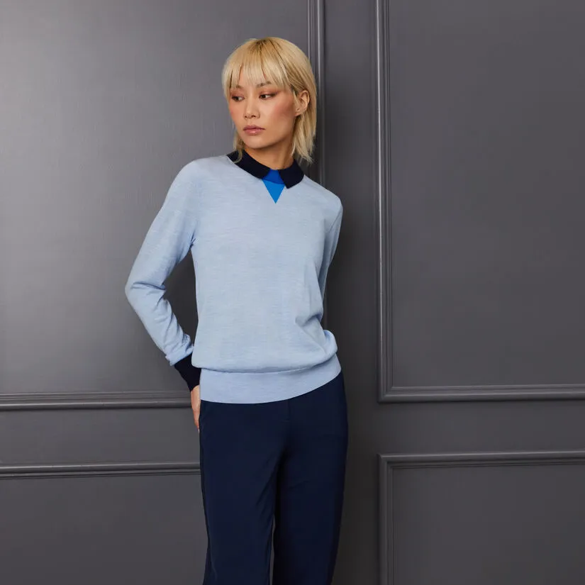 MADE WITH COZY ALL-SEASON MERINO WOOL, THIS STYLE IS A STAND OUT YEAR ROUND. DESIGNED WITH UNIQUE CONTRAST DETAILS AROUND THE COLLAR AND SLEEVES TO GIVE THE APPEARANCE OF SOPHISTICATED LAYERING SO YOU CAN ELEVATE YOUR LOOK WITH EASE. G4LS23S604