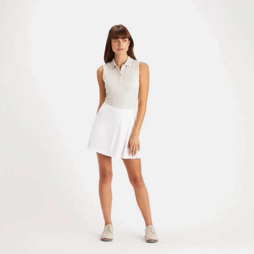FEEL COMFORTABLE AND CONFIDENT IN THIS ITERATION OF OUR POPULAR SKORT LINE. MADE WITH SUPER COMFORTABLE NYLON STRETCH TWILL WITH BUILT IN SHORTS SO YOU CAN SWING WITH CONFIDENCE AND UNINHIBITED MOBILITY. THIS STYLE WILL ALSO ELEVATE YOUR STYLE GAME WITH UNIQUE SIDE PLEATS THAT TAKE ANY LOOK UP A NOTCH. PAIR IT WITH A SLEEVELESS POLO FOR THE COURT, OR ONE OF OUR ALL SEASON MERINO WOOL SWEATERS FOR THE COURSE. G4LS23B127