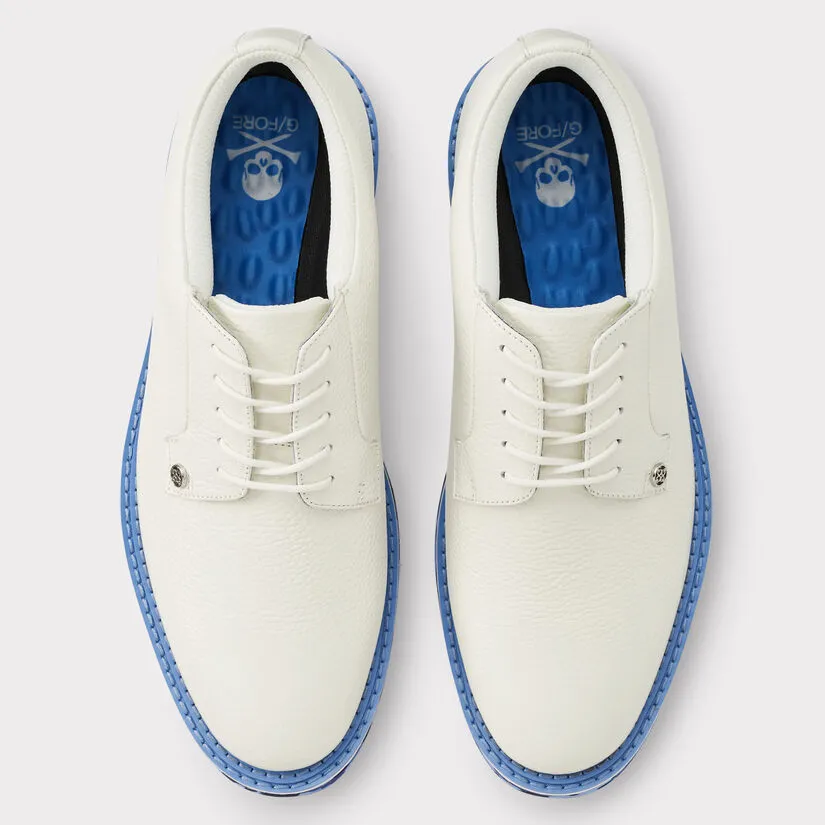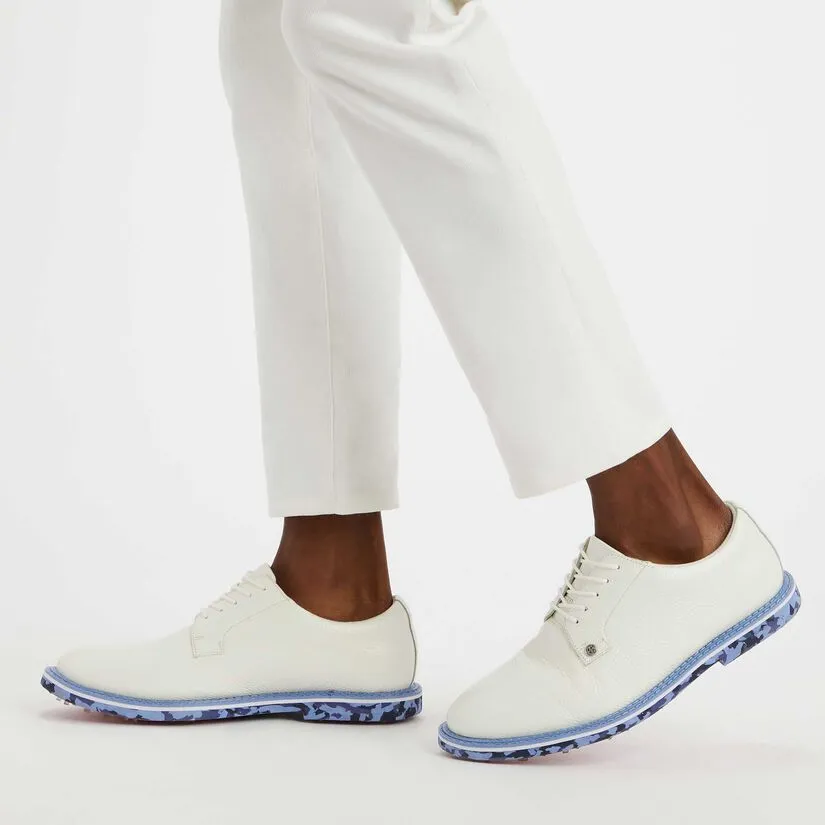AS STYLISH AS IT IS COMFORTABLE, THE CAMO GALLIVANTER GOLF SHOE COMBINES AN ATHLETIC FIT WITH PREMIUM WATERPROOF LEATHER. CUSTOM DESIGNED BY G/FORE’S TEAM OF FOOTWEAR EXPERTS, THIS STYLE FEATURES A CAMOUFLAGE OUTSOLE IN A RANGE OF G/FORE COLOURWAYS. THE GALLIVANTER BOASTS AN ULTRA LIGHTWEIGHT SOLE COUPLED WITH A BESPOKE CLEAT DESIGN FOR OPTIMAL ON-COURSE TRACTION. THIS SHOE SPORTS A WASHABLE AND ANTIMICROBIAL, TRIPLE DENSITY FOAM CUSHION FOOTBED FOR SUPERIOR COMFORT ALONG WITH COMFORT SYSTEM TECHNOLOGY WHICH ALLOWS AIRFLOW TO FEET AND PROVIDES THE ULTIMATE MASSAGE FOR YOUR SOLES. G4MS22EF02