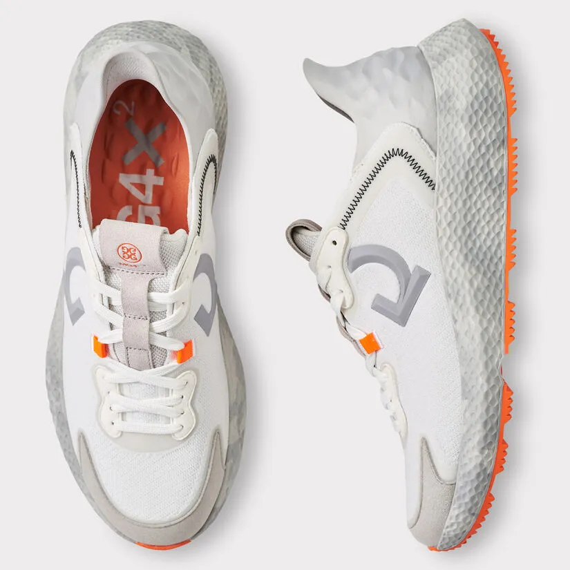 THE MG4X2 IS A MULTI-FUNCTIONAL SHOE THAT TAKES YOU FROM THE STREET TO THE COURSE WITH EASE. FEATURING A ONE-PIECE ENGINEERED WATERPROOF G/DRY KNIT UPPER FOR UNBEATABLE COMFORT, AN AUXETIC LATTICE MIDSOLE FOR ALL-DAY SUPPORT, A SAWTOOTH TRACTION PATTERN FOR GRIP, AND FINISHED WITH OUR STAPLE TRIPLE-DENSITY FOAM CUSHION FOOTBED FOR A MASSAGE WITH EVERY STEP. G4MS22EF40