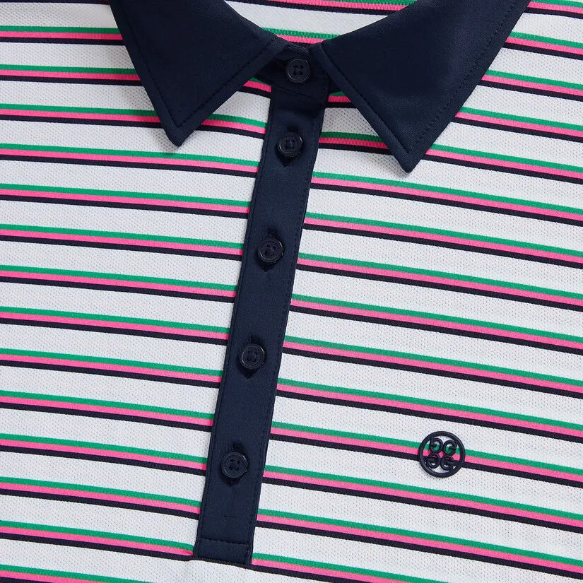 THIS SPORTY TRICOLOUR PERFORATED JERSEY STRIPE POLO IS A CLASSIC STAPLE THAT EVERY PLAYER SHOULD HAVE. DESIGNED WITH PERFORATED TECH JERSEY FABRIC, IT PROVIDES MAXIMUM MOBILITY AND ENHANCED BREATHABILITY, SO YOU CAN TAKE ON THE COURSE IN COMFORT AND STYLE. G4LS23K504