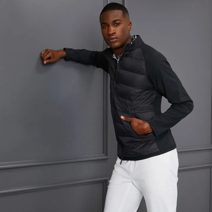 OUR TEAM OF DESIGNERS WORKED TO PERFECT THE PERFORMER JACKET TO BE YOUR NEW GO-TO FOR EXCEPTIONAL MOBILITY ON THE COURSE & ULTIMATE PROTECTION FROM THE ELEMENTS. ITS EXTREMELY LIGHTWEIGHT, SILKY, 4-WAY STRETCH FABRICATION PROVIDES SHIELDING FROM THE WIND & UNRESTRICTED MOTION, WHILE THE MOSSED INTERIOR SUPPLIES MAXIMUM WARMTH FOR COLD MORNINGS ON THE FAIRWAY. G4MF20O02