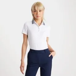 THE PLEATED COLLAR SILKY TECH NYLON POLO IS DESIGNED WITH SUPER SOFT, LIGHTWEIGHT, AND STRETCHY FABRIC, PLUS MOISTURE WICKING PROPERTIES, SO YOU’LL EXPERIENCE ALL DAY COMFORT ON THE COURSE. THIS STYLE IS DESIGNED WITH A STRIPED JACQUARD FLAT KNIT COLLAR FOR A TOUCH OF LUXE. G4LS23K866
