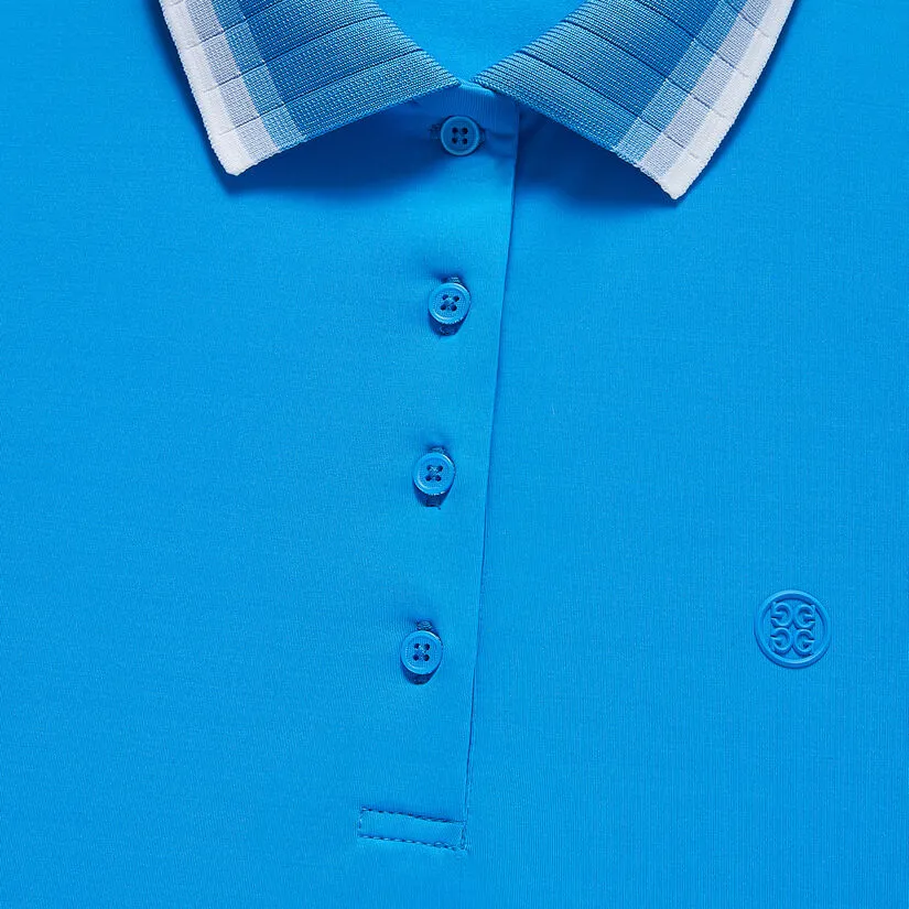 THE PLEATED COLLAR SLEEVELESS POLO IS DESIGNED IN SILKY TECH NYLON WITH MOISTURE WICKING PROPERTIES, SO YOU’LL EXPERIENCE BREATHABLE ALL DAY COMFORT. PLUS, IT FEATURES A MULTICOLOURED STRIPED JACQUARD FLAT KNIT COLLAR FOR SUPERIOR STYLE. G4LS23K860A