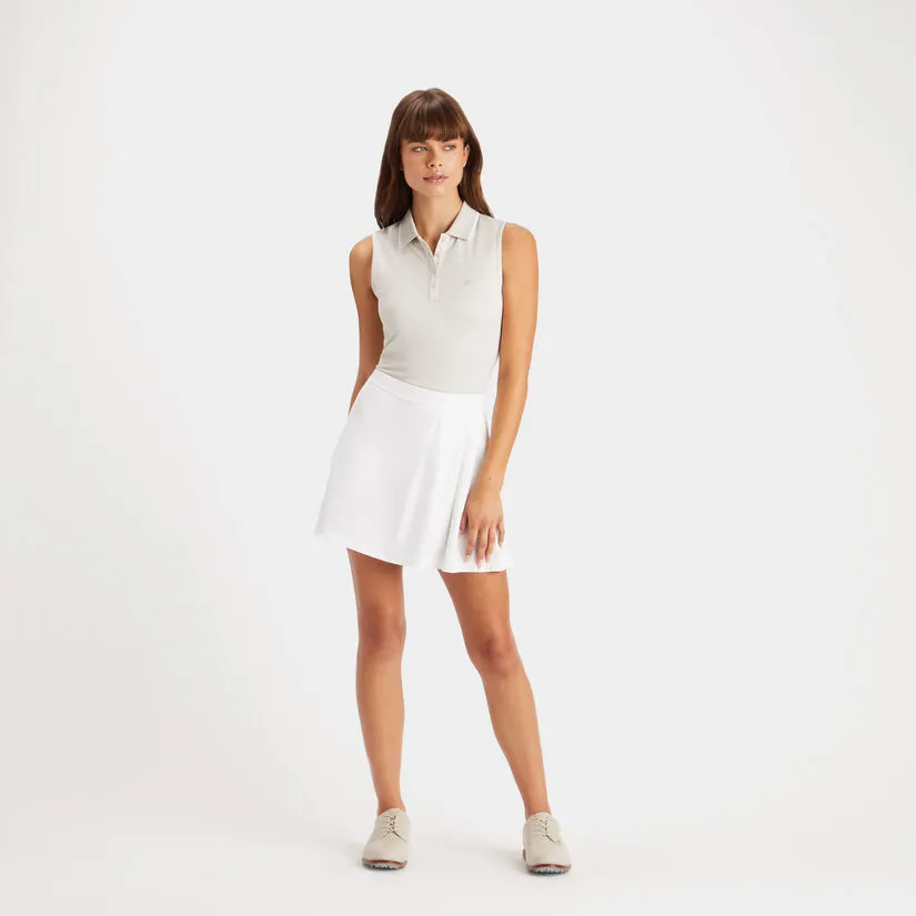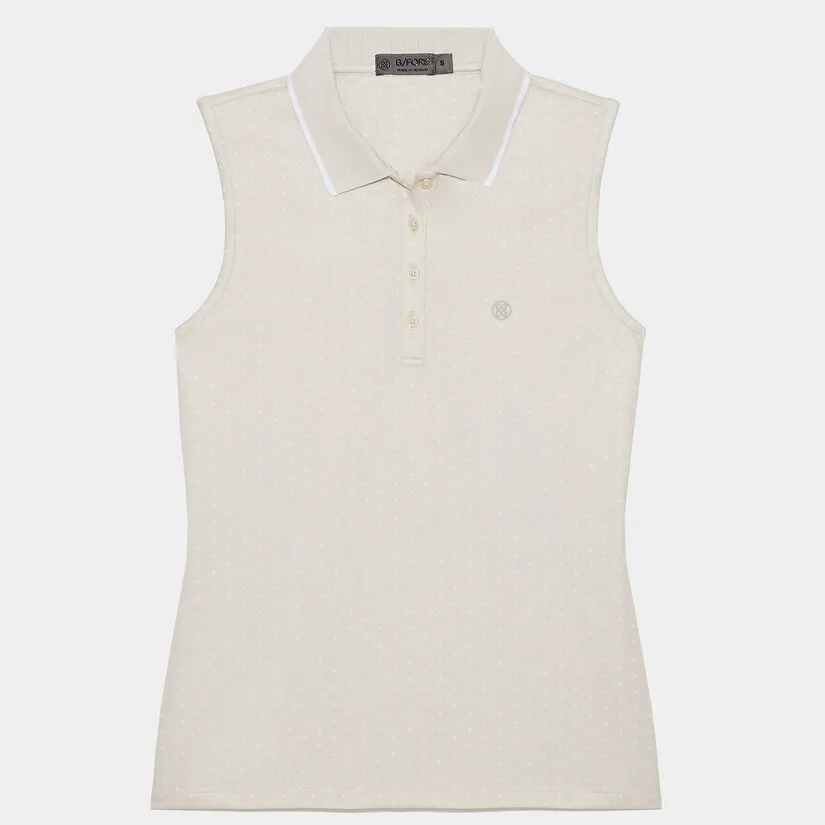 STAY CLASSY AND COOL IN THE POLKA DOT PLEATED COLLAR JACQUARD SLEEVELESS POLO MADE WITH STYLISH DOUBLE KNIT JACQUARD THAT FEATURES MOISTURE WICKING PROPERTIES FOR HOT DAYS. PAIR IT WITH THE EFFORTLESS SKORT AND ONE OF OUR MANY GALLIVANTER GOLF SHOE STYLES FOR A POLISHED LOOK. G4LS23K871