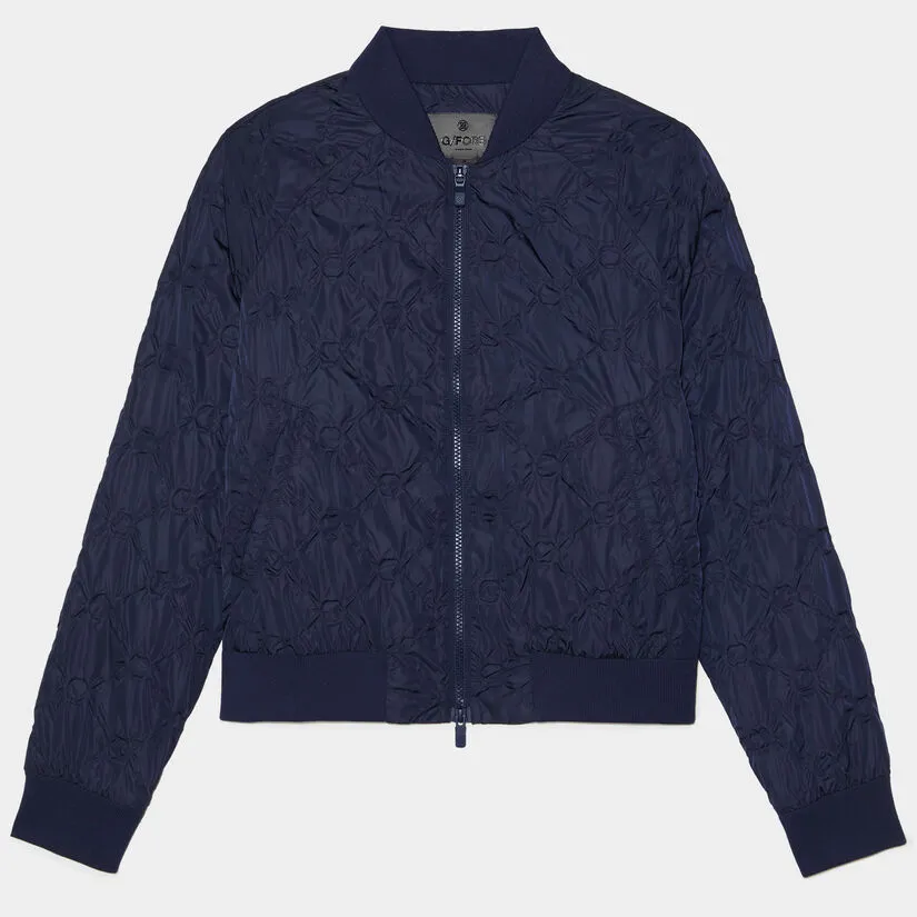 SUPER STYLISH, THIS LIMITED EDITION BOMBER STYLE JACKET IS MADE WITH UNIQUE EMBOSSED NYLON FILLED WITH DOWN-FEEL THERMAL INSULATION FOR EXTRA WARMTH. PERFECT FOR WINDY DAYS ON THE COURSE OR COLD NIGHTS OUT ON THE TOWN. G4LS23O59