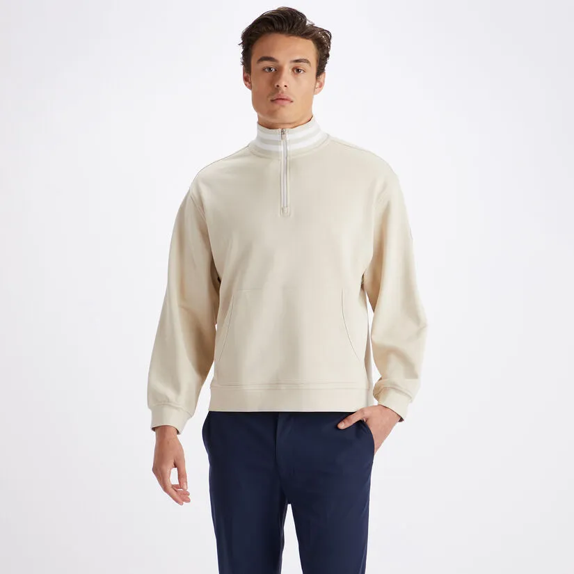 RIB COLLAR FRENCH TERRY QUARTER ZIP SLIM FIT PULLOVER