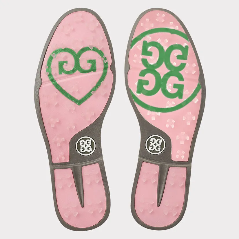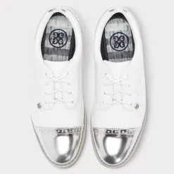 AS STYLISH AS IT IS COMFORTABLE, THE CAP TOE GALLIVANTER GOLF SHOE COMBINES AN ATHLETIC FIT WITH PREMIUM WATERPROOF LEATHER IN SIGNATURE G/FORE COLOURWAYS. THIS STYLE FEATURES A PINKED EDGE ONYX BLACK PATENT LEATHER TOE AND HEEL CAP WITH BROGUING. CUSTOM DESIGNED BY G/FORE’S TEAM OF FOOTWEAR EXPERTS, THE CAP TOE BOASTS AN ULTRA LIGHTWEIGHT SOLE COUPLED WITH A BESPOKE CLEAT DESIGN FOR OPTIMAL ON-COURSE TRACTION. THIS SHOE SPORTS A WASHABLE AND ANTI-MICROBIAL, TRIPLE DENSITY FOAM CUSHION FOOTBED FOR SUPERIOR COMFORT ALONG WITH COMFORT SYSTEM TECHNOLOGY WHICH ALLOWS AIRFLOW TO FEET AND PROVIDES THE ULTIMATE MASSAGE FOR YOUR SOLES. G4LC20EF04